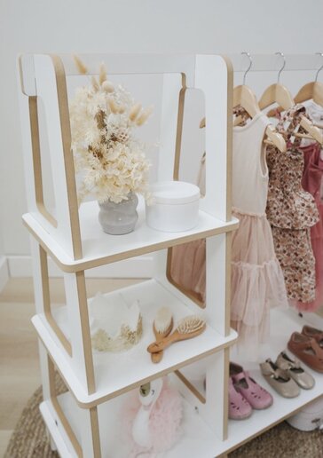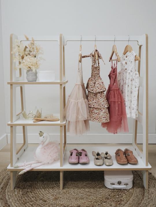 Their new Dress Up Racks are a unique statement piece for nurseries, play rooms or bedrooms and will grow with your child as they start to explore the many wonders of play. Featuring a hanging rack, three shelves and base platform allowing purposeful styling and display options to personalise their space. How cute!